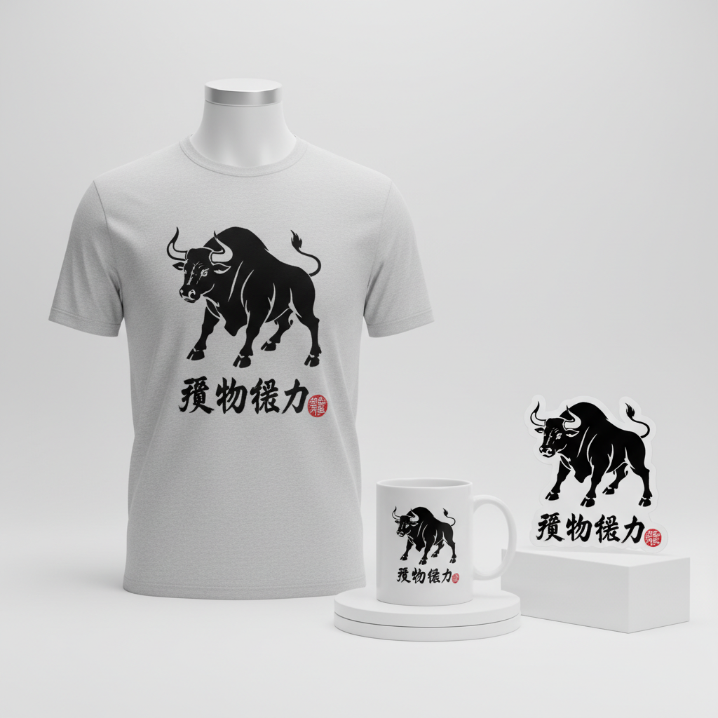 - 👕 Product Selection: Given the nuanced details of Sumi-e and the strong visual impact of the Shodo calligraphy and red seal, this design truly shines on light-colored apparel. Think crisp white t-shirts, soft cream hoodies, or pale grey crewnecks. The lighter canvas allows the ink wash bull and the vibrant red seal to pop, ensuring maximum visibility and appreciation for the intricate artistic elements.