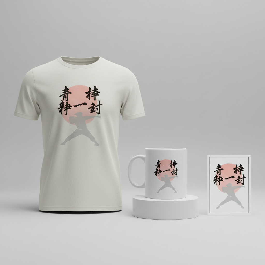 - 👕 Product Selection: The ideal apparel for this design is light-colored garments. Think crisp white, soft grey, or natural cream t-shirts, hoodies, and crewnecks. The subtle background elements—the faint red circle and the samurai-esque pitcher—will truly pop against a light canvas, allowing the bold Kanji calligraphy to stand out with maximum impact and clarity.