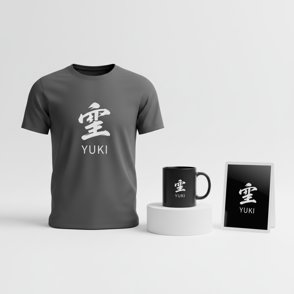 - ✍️ Typography: The primary element, the kanji “雪,” commands attention. Below it, in a smaller, clean sans-serif font, is its English transliteration, “YUKI.” This duality serves multiple purposes: it educates non-Japanese speakers, bridges cultures, and reinforces the design’s understated sophistication. The choice of fonts balances traditional art with contemporary readability.