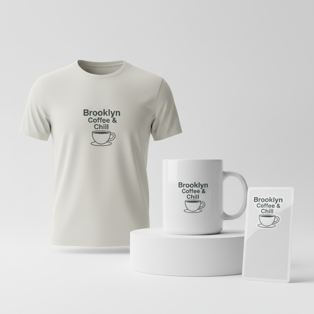 What apparel colors or styles would best complement this ‘Brooklyn Coffee & Chill’ concept?