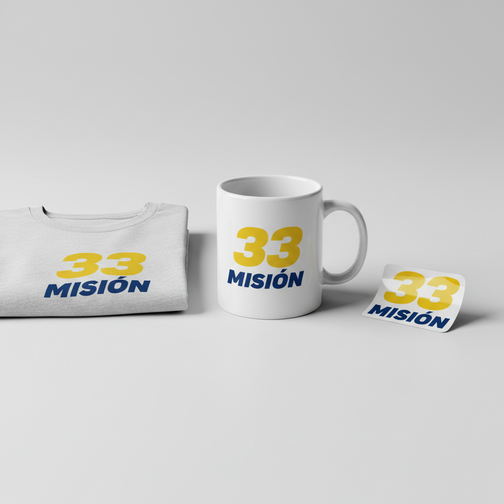 - 👕 Product Selection: Given the vibrant color palette and the desire for a clean, impactful display, this design is ideally suited for light-colored apparel. Think crisp white, light grey, or even a pale yellow t-shirts, hoodies, and polo shirts. The lighter background allows the deep blue and vibrant yellow to pop, ensuring maximum visibility and appeal for fans wanting to proudly display their ‘Misión 33’ allegiance.