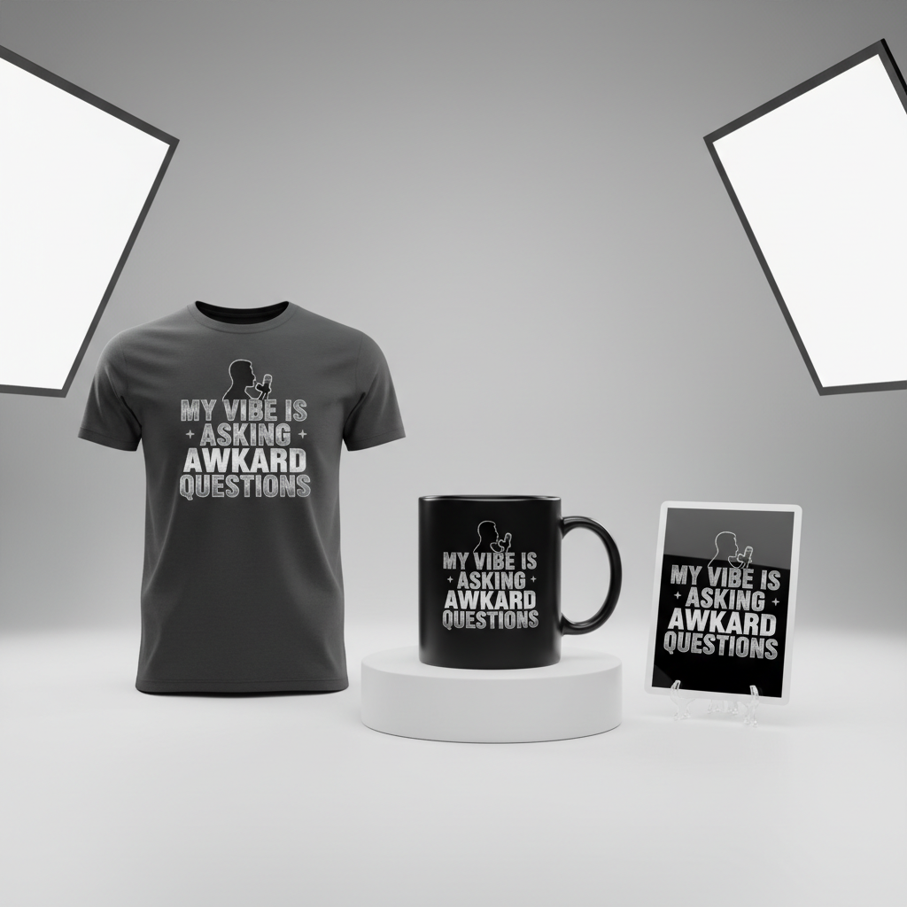 - ✍️ Typography Ideas: The text should scream ’90s. Think distressed, bold, and blocky fonts, perhaps with a slight chrome effect. This aesthetic instantly evokes the era of classic hip-hop and streetwear, adding another layer of trendy appeal. The phrase, “My Vibe is Asking Awkward Questions,” perfectly encapsulates the essence of the documentarian’s approach and provides a humorous, relatable sentiment.