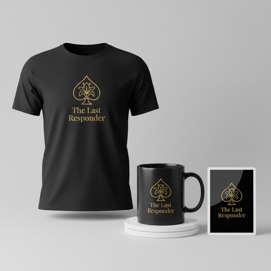 The design achieves this balance through its minimalist aesthetic and profound symbolism. The combination of a spade and lily is evocative without being morbid, while the elegant serif typography and “The Last Responder” text exude dignity. By focusing on professional identity and pride, rather than sensationalizing death, it appeals directly to those within the industry who value discretion, respect, and a quiet acknowledgment of their essential work.