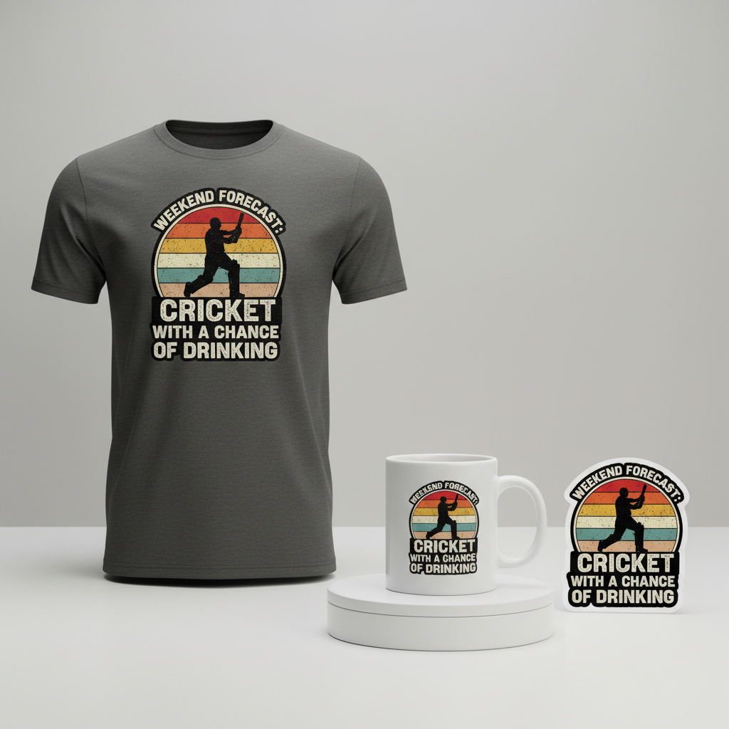 - ✍️ Typography Ideas: For the design text, “Weekend Forecast: Cricket With A Chance Of Drinking,” a bold, sans-serif font popular in 70s sports branding could be incredibly effective. This style evokes a sense of nostalgia and strength. The phrase itself is a popular, humorous gem within sports culture, making the design instantly relatable and wearable for any fan who enjoys the social aspect of game day. It’s lighthearted, universally understood, and appeals to a relaxed, celebratory vibe.